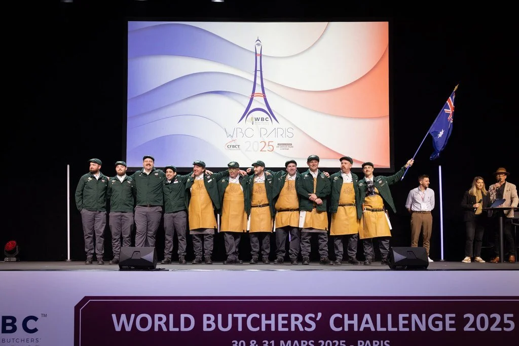 His achievements on the world stage are hard to ignore. He has represented Australia at the World Butchers’ Challenge twice, helped the team place second in Sacramento and third in Paris, and became a world champion butcher in the single man butchery competition in Ascot. But being named in the 2025 WBC All Star Team sits right at the top.